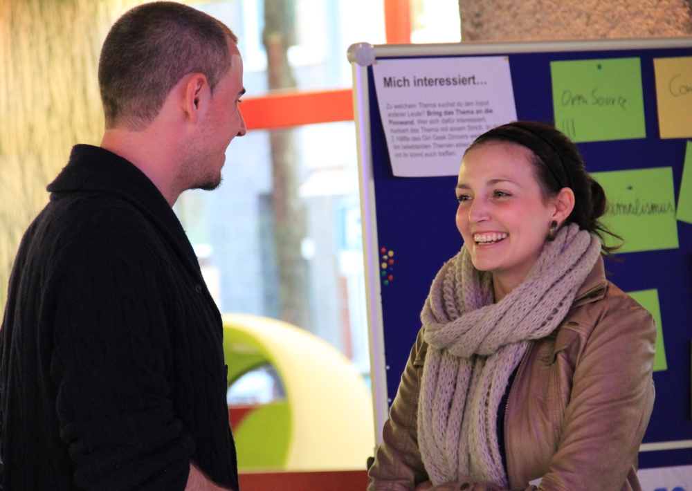 Moment, auf dem Foto sind ja auch Männer! Das Girl Geek Dinner ist doch eine Frauenveranstaltung! Das ist so nicht ganz richtig. Aber von vorn: Girl Geek Dinner sind Networking-Veranstaltungen für Technik- und Medienaffine. Hier werden Kontakte geknüpft und Visitenkarten verteilt. Hier entstehen Ideen, Projekte … und Freundschaften. Und weil die technikliebenden Frauen bei Networking-Veranstaltungen oft in der Minderheit sind, gibt es hier eine Grundregel: Männer sind herzlich willkommen, können sich aber nur als Gast einer Frau anmelden.