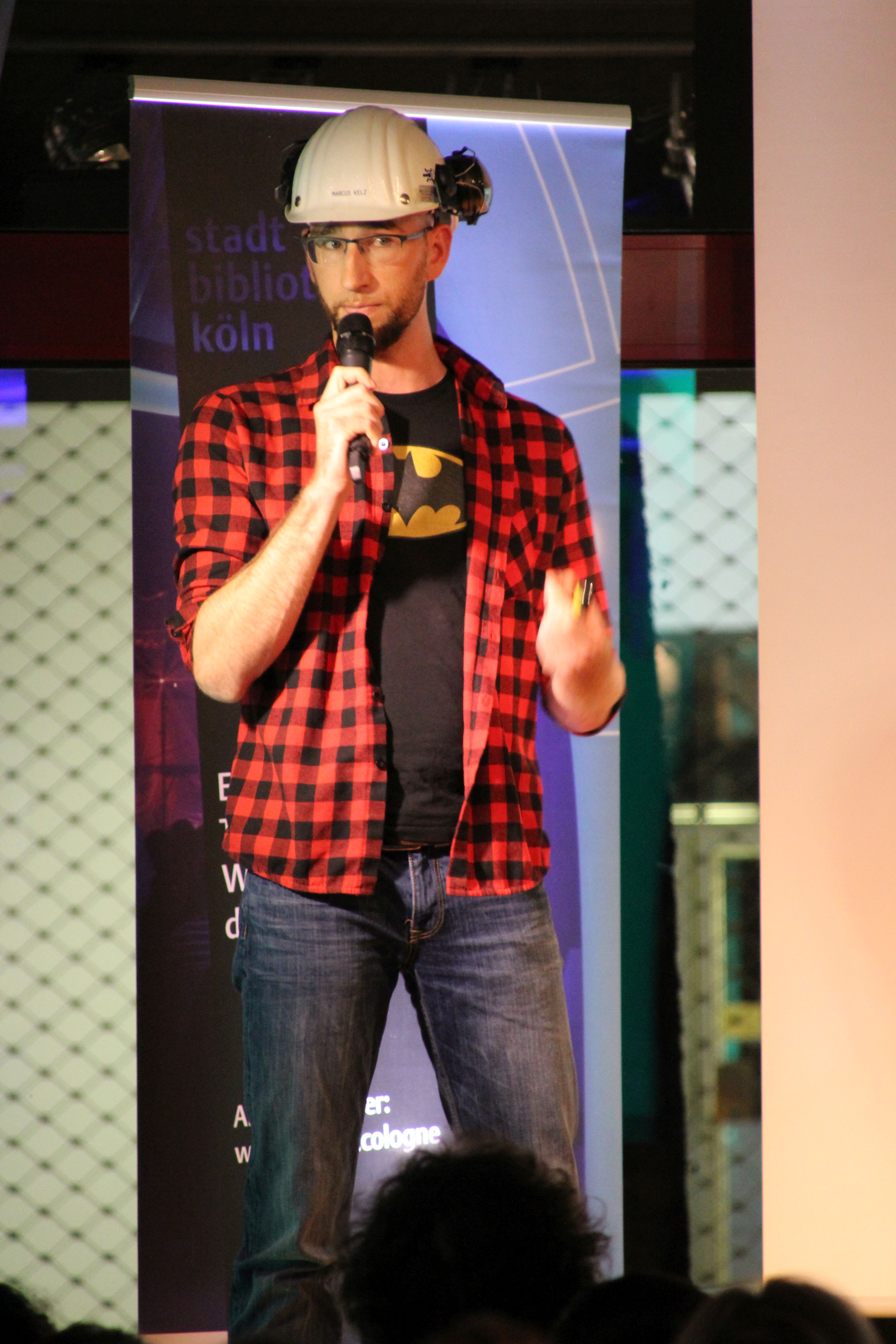 img_3575_cut_like Veröffentlicht 8. Januar 2019 in 3350 × 5025 in Das war der MINTköln Science Slam 2018 ← Zurück Weiter → Marcus und die Modelle, passend im Batman-Look ©Stadtbibliothek Köln